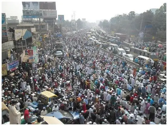 Bishwa Ijtema (or Bishsho Istema, Bengali: বিশ্ব ইজতেমা, the World or Global Congregation or Meeting) is an annual Aalmi Ijtema held at Tongi, Bangladesh by the river Turag. It is the 2nd largest Muslim congregation in the world after Hajj. The event focuses on prayers and supplication and does not allow political discussion. The local police estimated the number of attendees of 2007 ijtema to be 3 million while in 2010 the number of attendees was 5 million.